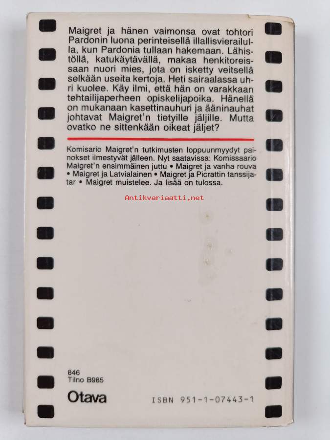 Muu(t) tekijä(t): Aili PalmenMerkinnät: omistajamerkintä (leima)Alkuteos: Maigret et le tueur