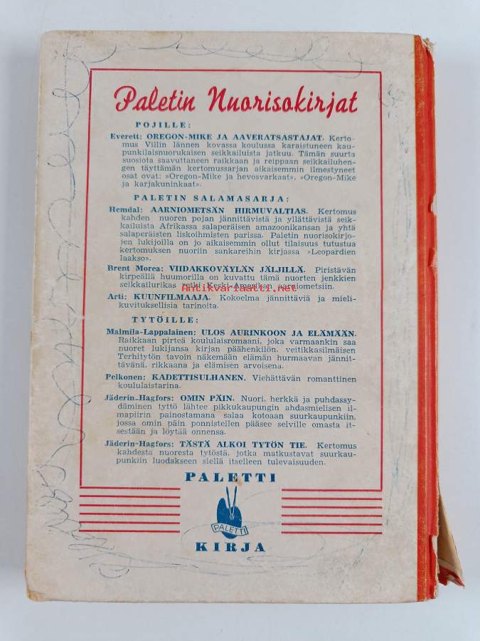 Tyydyttävä. Tarkempi kuntoluokka: K2- ; Jonkin verran repeämää selkämyksen päissä, pientä kulumaa, hieman repeämää reunoilla. takakannessa kuulakärkikynällä tehtyä jälkeä