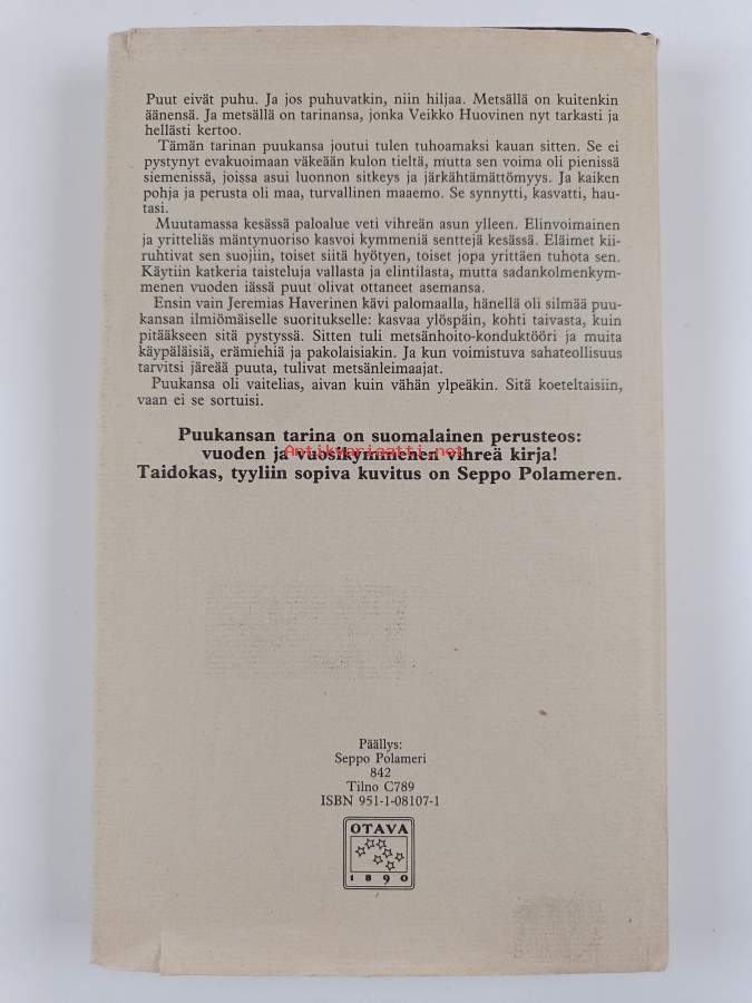 Hyvä. Hieman kulumaa kansissa, takana hintalapun jäämää, selkämyksessä hieman vinoutta. Kansipaperin kunto: kulumaa/pienehköjä repeämiä & tahraisuutta