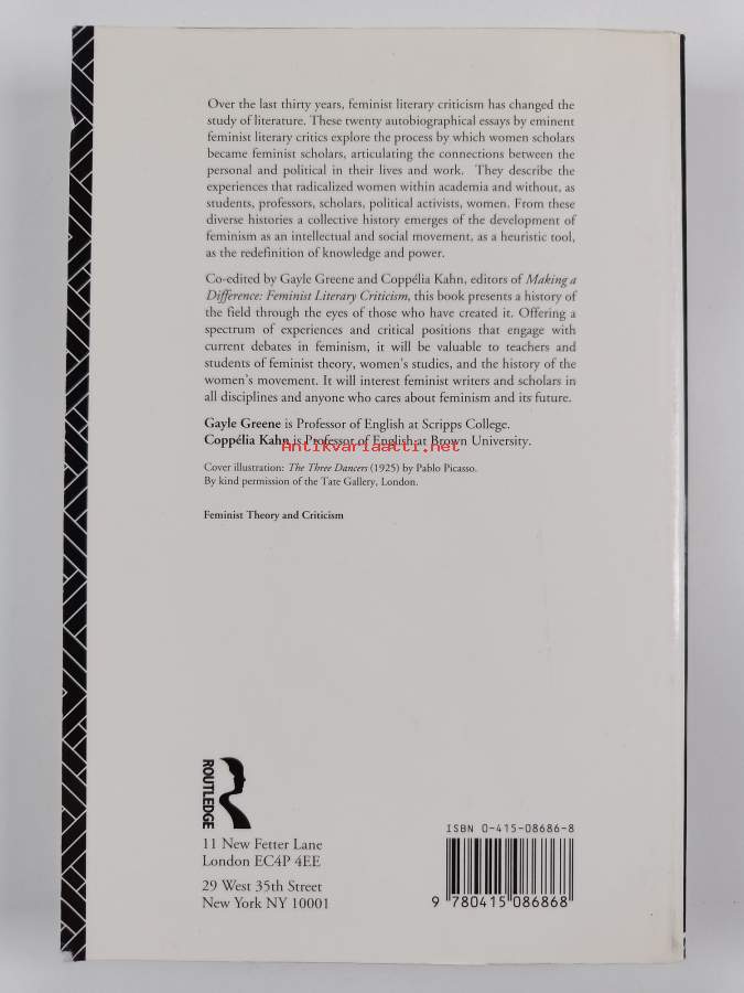 Muu(t) tekijä(t): Gayle Greene, Coppélia KahnMerkinnät: omistajamerkintäAsiasanat: kirjallisuudentutkimus, feminismi, litteraturvetenskap, feminism