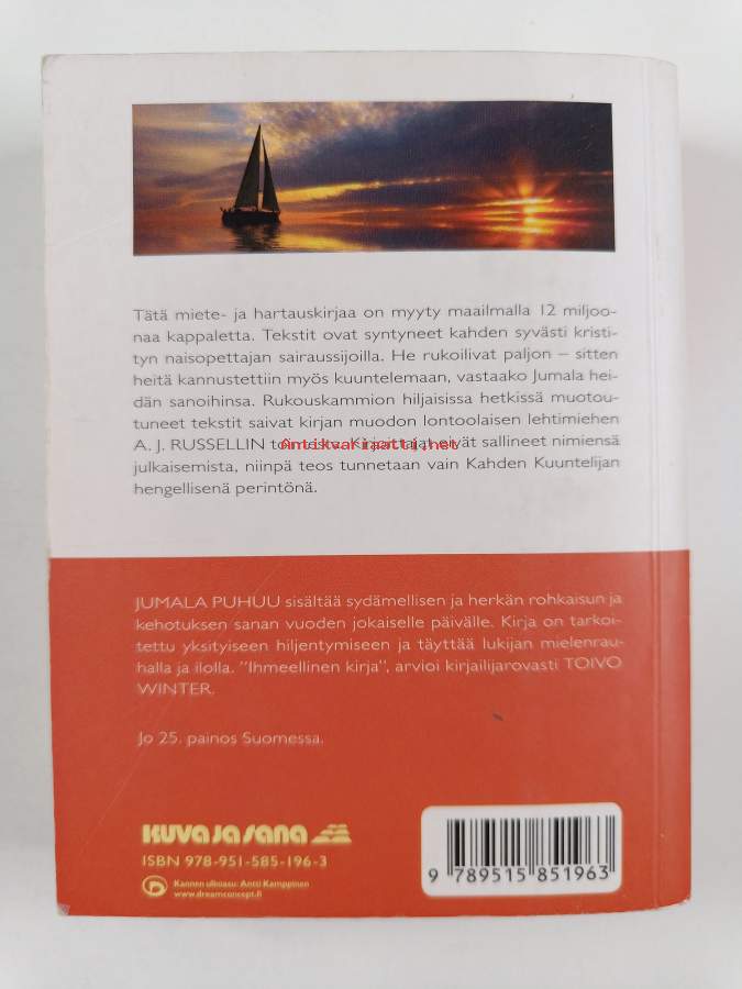 Hyvä. Tarkempi kuntoluokka: K3- ; Hieman kulumaa kansissa, pienoista repeämää reunoilla ja kulmissa, selkämyksessä hieman vinoutta