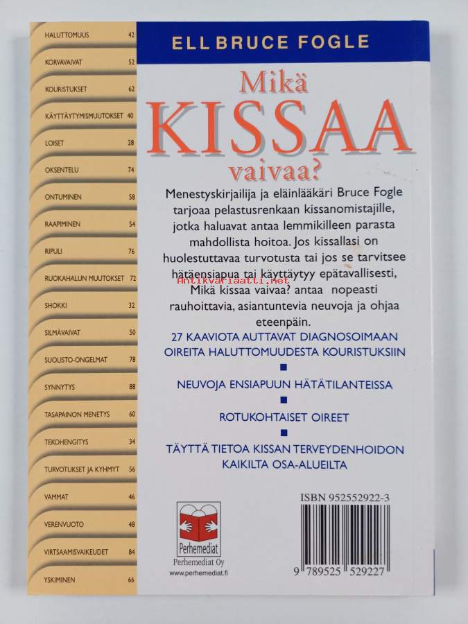 Muu(t) tekijä(t): Antti SaarelaAlkuteos: What`s up with my cat?Asiasanat: taudit, kissa, hoito, eläintaudit