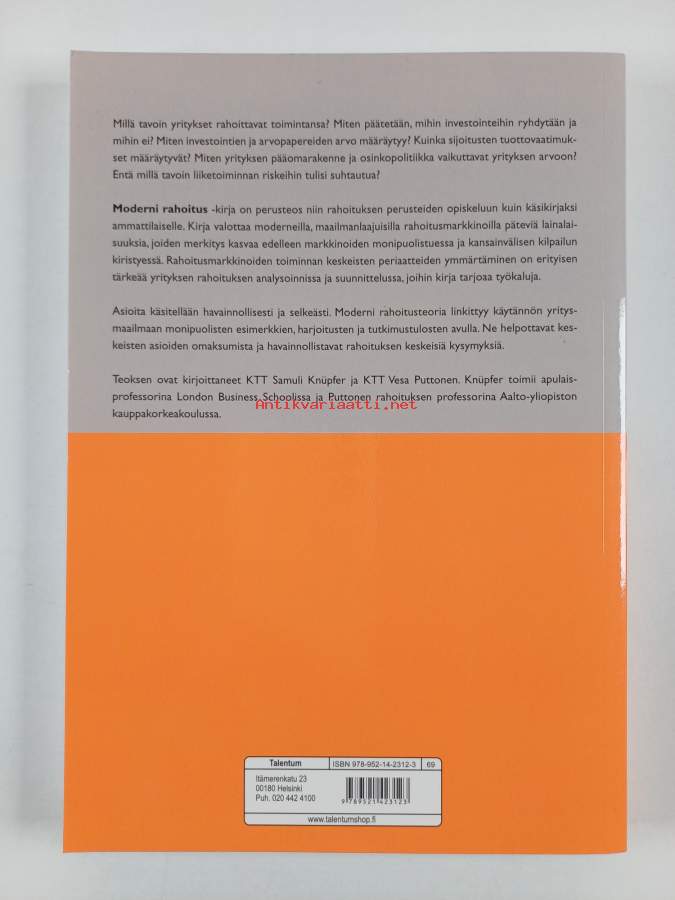 Muu(t) tekijä(t): Vesa PuttonenAsiasanat: liiketalous, tilinpäätös, rahoitusmarkkinat, rahoitus, investoinnit, riskienhallinta, analyysi, tunnusluvut, johdannaismarkkinat, pääoma, arvonmääritys, tilinpäätösanalyysi
