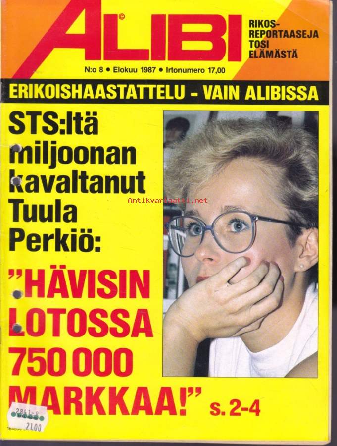 Alibi 1987 N:o 8. Haukiputaan pillerimiehen uhria nöyryytettiin. Kun Sulo Aittoniemi suuttui. Murhapolttajan muotokuva.