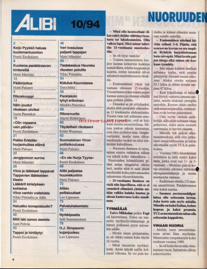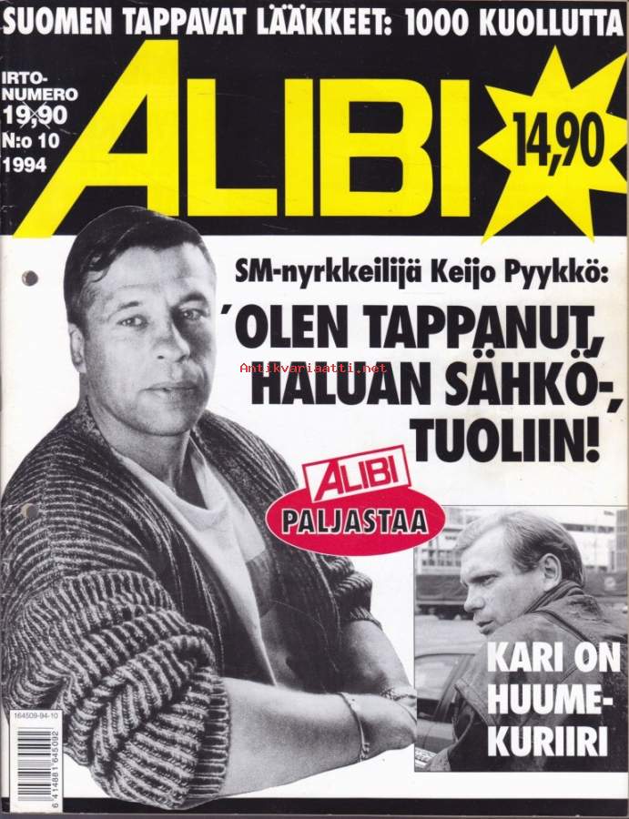 Alibi 1994 N:o 10. Olen tappanut - haluan sähkötuoliin. Kari on huumekuriiri. Haluatko konepistoolin? Olin vapaana vain päivän.