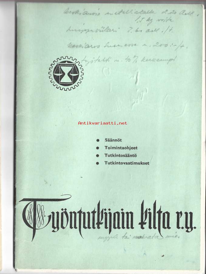 Työntutkijain kilta ry - Säännöt, ohjeet, vaatimukset 1953