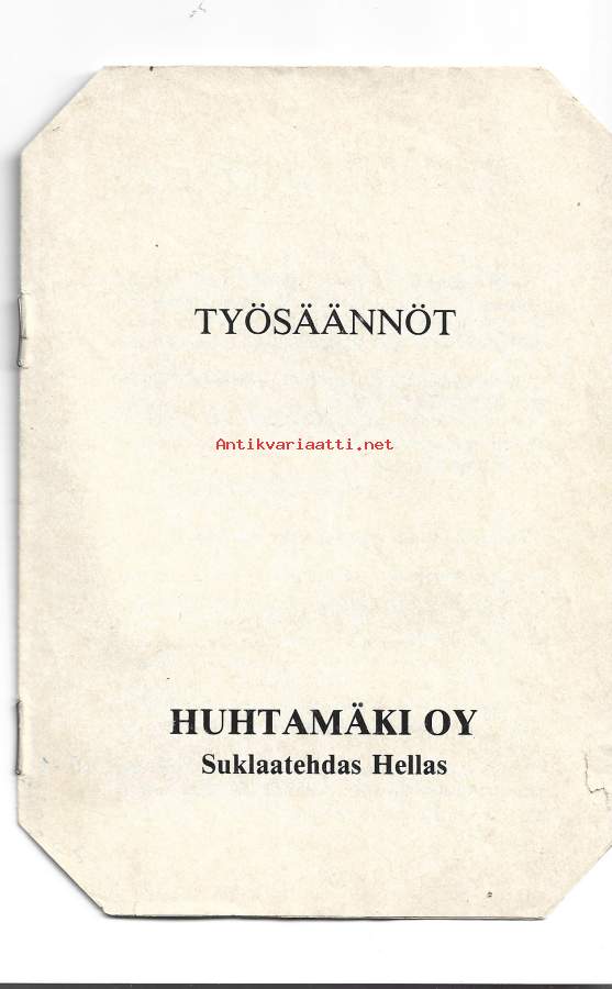 Huhtamäki Oy Suklaatehdas - Työsäännöt 1981