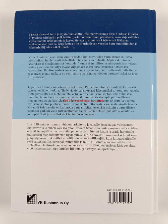 Muu(t) tekijä(t): Olli Ilander, Jaakko Mursu ym.Asiasanat: ruoka-aineet, liikunta, naiset, terveysvaikutukset, kuntoliikunta, urheilijat, vitamiinit, kivennäisaineet, ruokavaliot, kilpaurheilu, ravitsemus, laihdutus, nuoret, ravintoaineet, painonhallinta, aineenvaihdunta, antioksidantit, ravitsemussuositukset, suorituskyky, energiansaanti, lapset (ikäryhmät), hivenaineet, Sports, Exercise, Nutritional Requirements, vitamins, food, trace elements, diet, energiankulutus (energiateknologia), Drinking, Meals, Dietary Proteins, Nutritional Support, Nutritional Sciences, Sports Nutritional Physiological Phenomena, Sports Nutritional Sciences, Dietary Carbohydrates, Dietary Fats