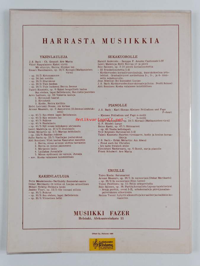 Kirkkolauluja : Yksinlauluohjelmistoa kirkollisiin tilaisuuksiin, erityisesti hautajais- ja vihkiäistoimituksiin