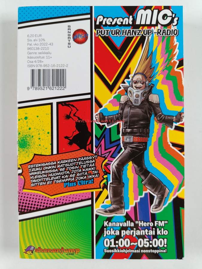 Muu(t) tekijä(t): Antti ValkamaSarja: My Hero Academia Vol. 4Alkuteos: Boku no hero academiaAsiasanat: supersankarit, yliluonnolliset voimat