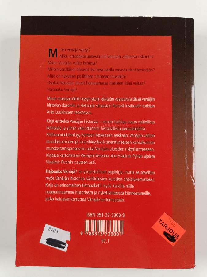 Hyvä. Tarkempi kuntoluokka: K3+ ; Pienoista kulumaa kansissa, pienoista kolhua kansissa, takana vanhoja hintalappuja