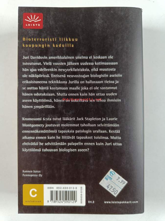 Hyvä. Pienoista kolhua reunoilla ja kulmissa, pienoista kulumaa kansissa, selkämyksessä hieman vinoutta, selkämyksessä lukutaittumaa, takana vanha hintalappu