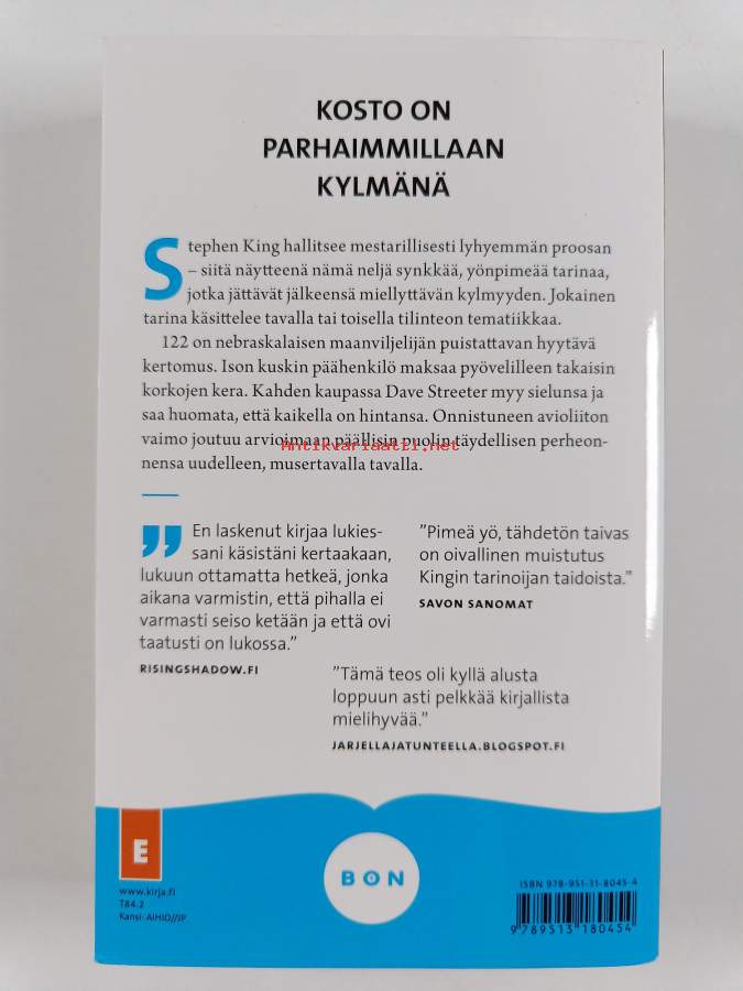 Muu(t) tekijä(t): Ilkka RekiaroSarja: BonAlkuteos: Full dark, no stars