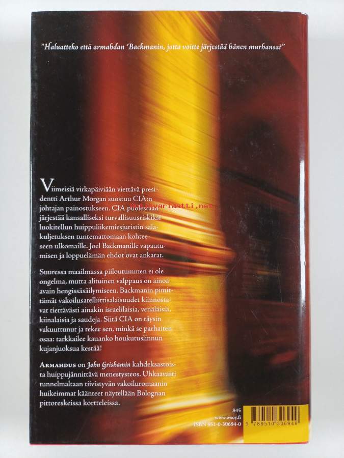 Grisham-paketti (8 kirjaa) : Joulua pakoon ; Avustaja ; Syytön ; Viimeinen valamies ; Vetoomus ; Kanteiden kuningas ; Armahdus ; Kutsu