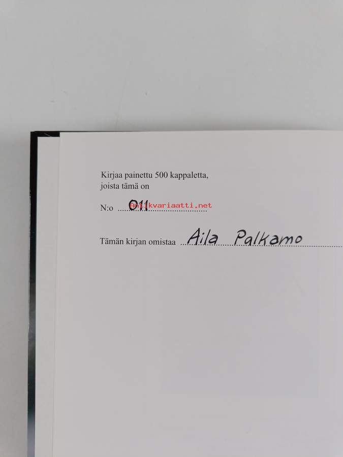 Hyvä. Tarkempi kuntoluokka: K3+ ; Hieman kulumaa kansissa. tätä teosta on painettu 500 kpl, joista tämä on numero 11