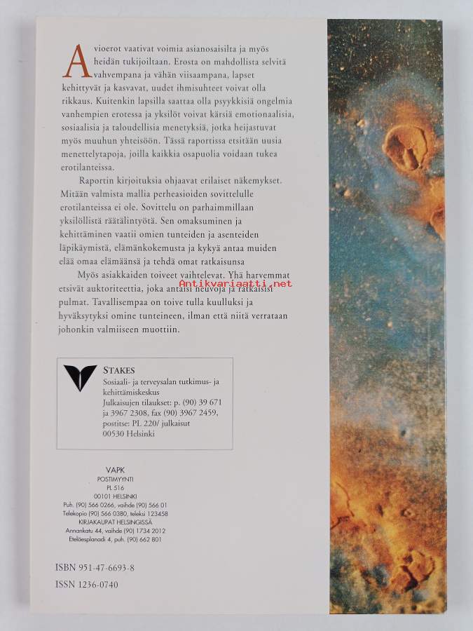 Muu(t) tekijä(t): Sirpa TaskinenSarja: Raportteja / Sosiaali- ja terveysalan tutkimus- ja kehittämiskeskus nro 84Asiasanat: perheneuvonta, kriisit, avioero, perheet, lapsen asema, uusperheet, perhe-elämä, sovittelu