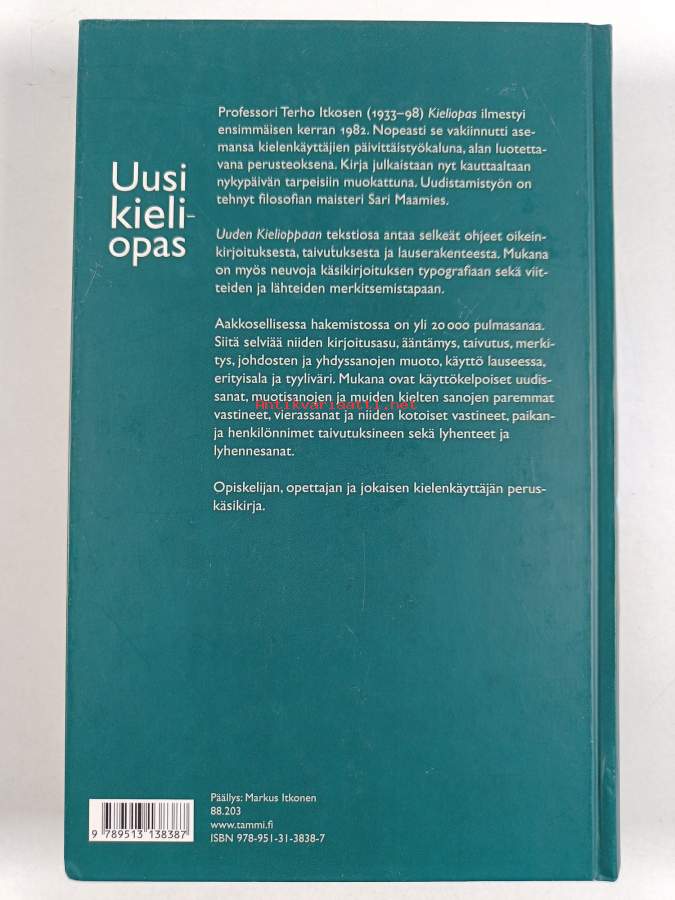 Muu(t) tekijä(t): Sari MaamiesAsiasanat: sanakirjat, suomen kieli, kielioppaat, oikeakielisyys, sanastot, viestintä, kielioppi, oikeinkirjoitus, kielitiede, kielenhuolto, lauseoppi, finska, communication, Philology, kommunikation, grammatik, writing, ordböcker, ordlistor, Finnish, taivutus (kielitiede), böjning (språkvetenskap), språkvetenskap, syntax, språkriktighet, språkhandböcker, språkvård, rättskrivning, Linguistics, language planning, language guides, ortografia, orthography