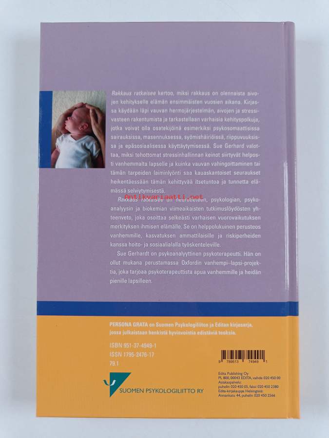 Muu(t) tekijä(t): Sole Lätti, Marja KiviraumaSarja: Persona Grata 17; Persona grataAlkuteos: Why love matters : how affection shapes a baby's brainAsiasanat: psykologia, persoonallisuuden kehitys, psyykkinen kehitys, itsetunto, vauvat, vanhempi-lapsisuhde, tunteet, rakkaus, persoonallisuus, tunne-elämä, aivot, mielenterveyshäiriöt, vuorovaikutus, vanhemmat, stressi, persoonallisuushäiriöt, masennus, aggressiot, fyysinen kehitys, neurologia, tunne-elämän kehitys, melankolia, sosiaalinen käyttäytyminen, kehitys, neuropsykologia, kiintymys, temperamentti, kehityspsykologia, neurotieteet, hermosto, kehityshäiriöt, psyykkiset vaikutukset, biopsykologia, varhainen vuorovaikutus, neurobiologia, lapsen kehitys, kaltoinkohtelu, lapset (ikäryhmät), traumaperäinen stressireaktio, communication, child development, emotions, Brain, Infant, itsesäätely, Personality Development, Parent-Child Relations, Child Developmet, hydrokortisoni