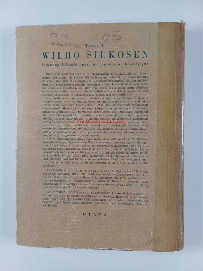 Merkinnät: omistajamerkintä leikattu pois etulehden ylälaidasta