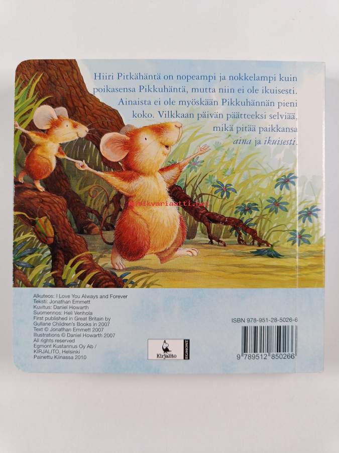 Muu(t) tekijä(t): Heli Venhola, Daniel HowarthAlkuteos: I love you always and foreverAsiasanat: lastenkirjallisuus, hiiret, ominaisuudet, kuvakirjat, paksulehtiset kirjat