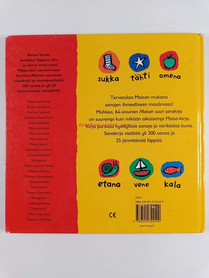 Muu(t) tekijä(t): Anneli HeimonenAlkuteos: Maisy's amazing word bookAsiasanat: kuvasanakirjat, kurkistuskirjat