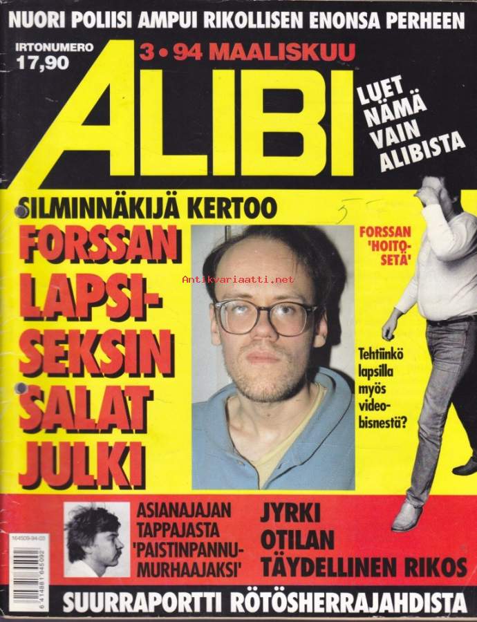 Alibi 1994 N:o 3. Forssan lapsiseksiskandaalin salat. Eurajoen törkeä pankkiryöstö. Suuret suomalaiset rötösherrat