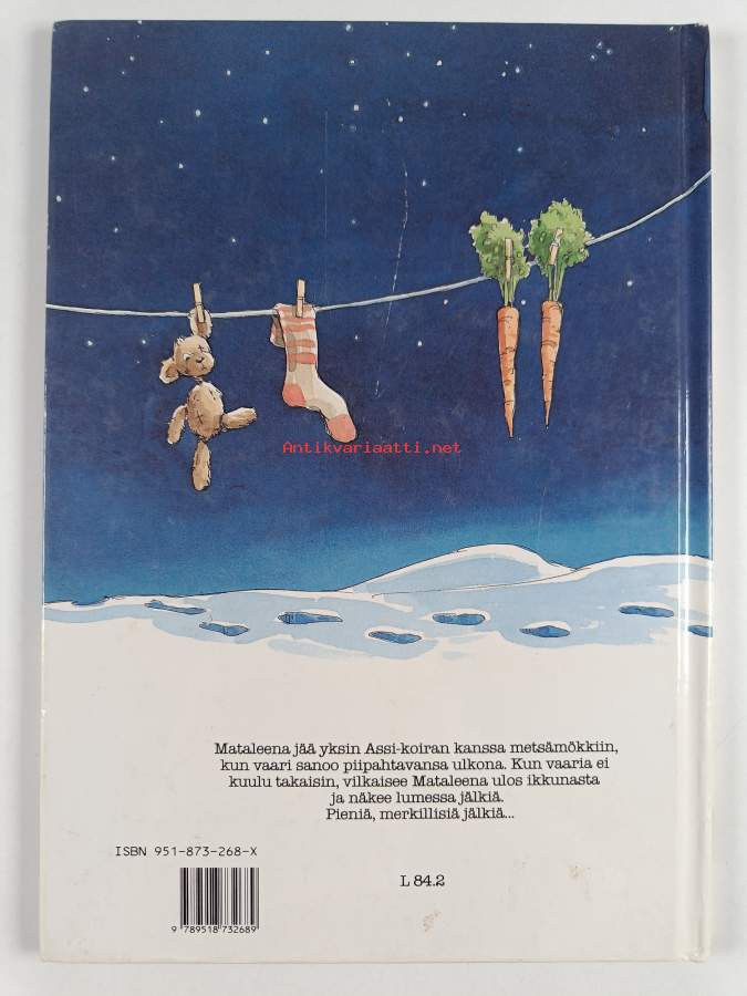 Alkuteos: Spåren i snönAsiasanat: lastenkirjallisuus, talvi, isoisät, viha, tontut, kuvakirjat