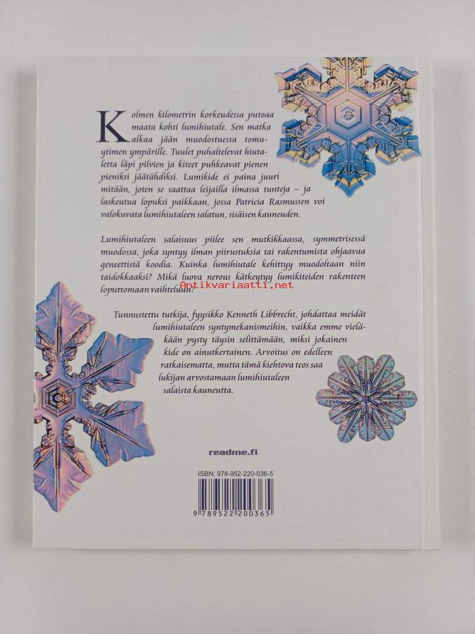 Muu(t) tekijä(t): Riitta Santala-Köykkä, Patricia RasmussenAlkuteos: The snowflake : winter's secret beautyAsiasanat: sääilmiöt, rakenne, kiteet, lumi