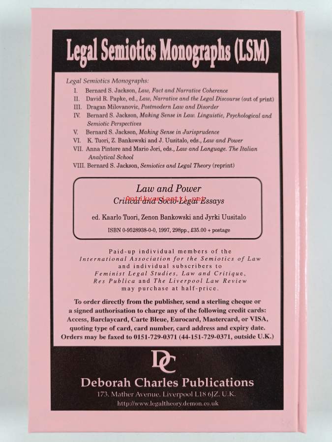 Muu(t) tekijä(t): Kaarlo Tuori, Ari Hirvonen ym.Sarja: Legal semiotics monographs 6Asiasanat: oikeuspolitiikka, oikeudenmukaisuus, pluralismi, legitimiteetti, oikeusfilosofia, rättsfilosofi, makt, rättvisa, rättspolitik, legitimitet, pluralism