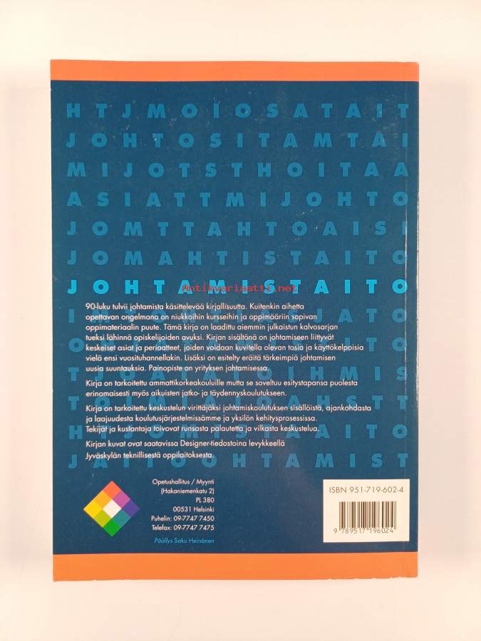 Asiasanat: yritykset, johtaminen, johtajat, johtajuus, liikkeenjohto, esimiehet, henkilöstöhallinto, organisaatiot, neuvottelutaito, laatujohtaminen, strategiat