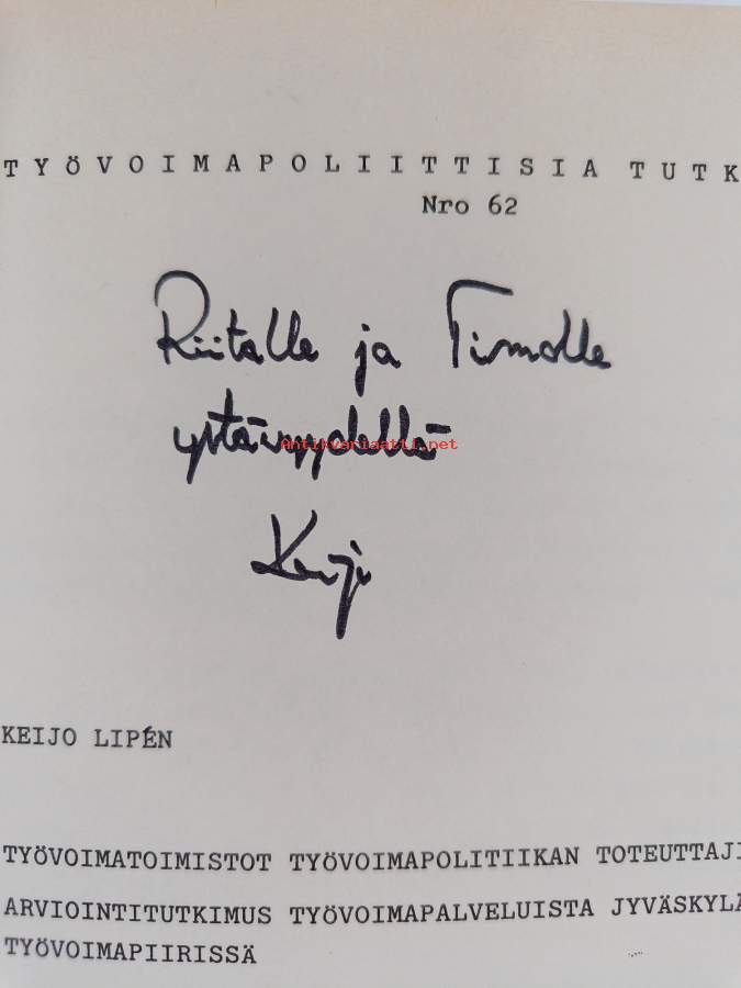 Sarja: Työvoimapoliittisia tutkimuksia nro 62Asiasanat: työvoimapolitiikka, työ- ja elinkeinotoimistot