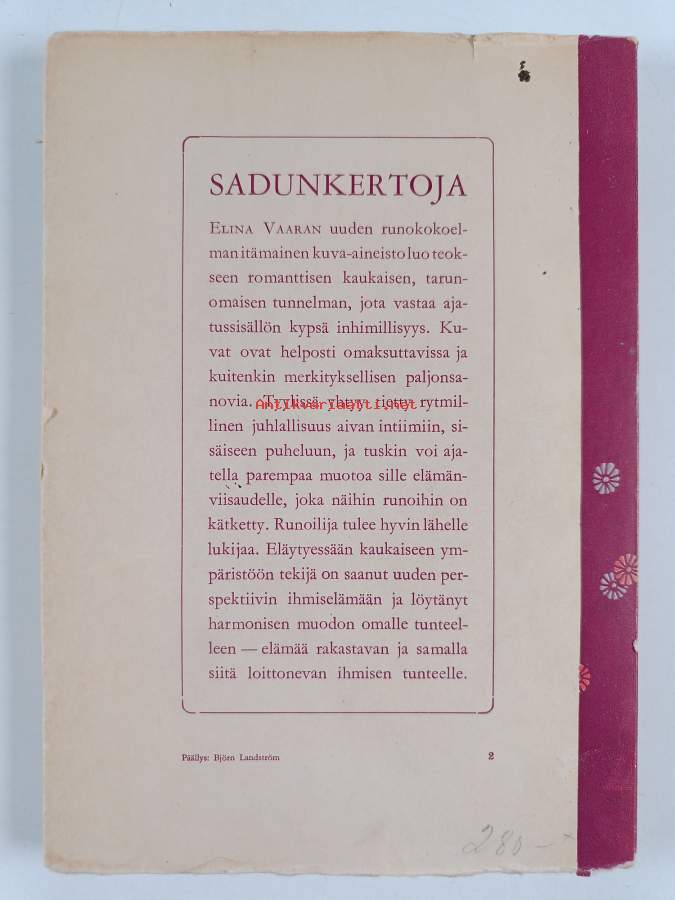 SadunkertojaKirjaHenkilö Vaara, Elina, 1903-1980WSOY 1954.
