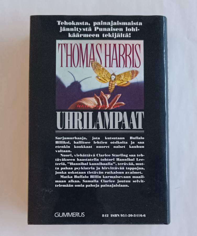 Psykologisen kauhun klassikko Thomas Harriselta, joka tunnetaan myös teosta edeltävästä kirjastaan Punainen lohikäärme. Uhrilampaassa, agentti Clarice Starling pyrkii ratkaisemaan sarjamurhaaja Buffalo Billin tapausta. Hän joutuu haastattelemaan tappajaa ja kannibaalia, tohtori Hannibal Leeteriä, päästäkseen lähemmäksi sarjamurhaajan jälkiä.