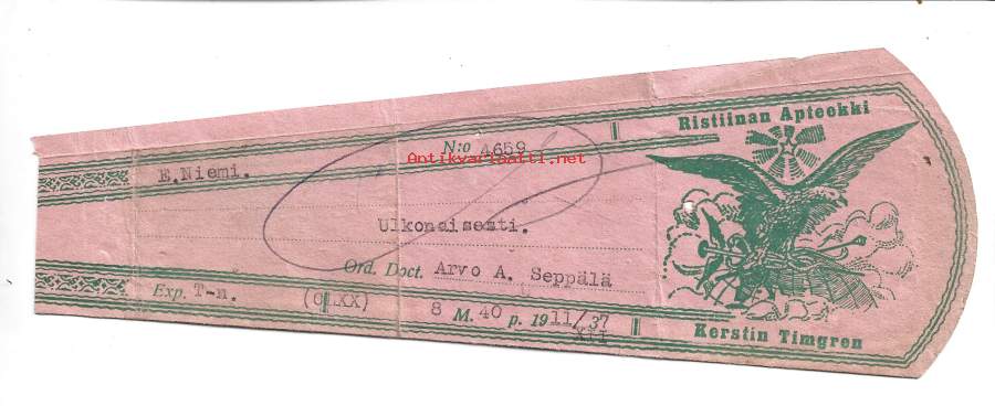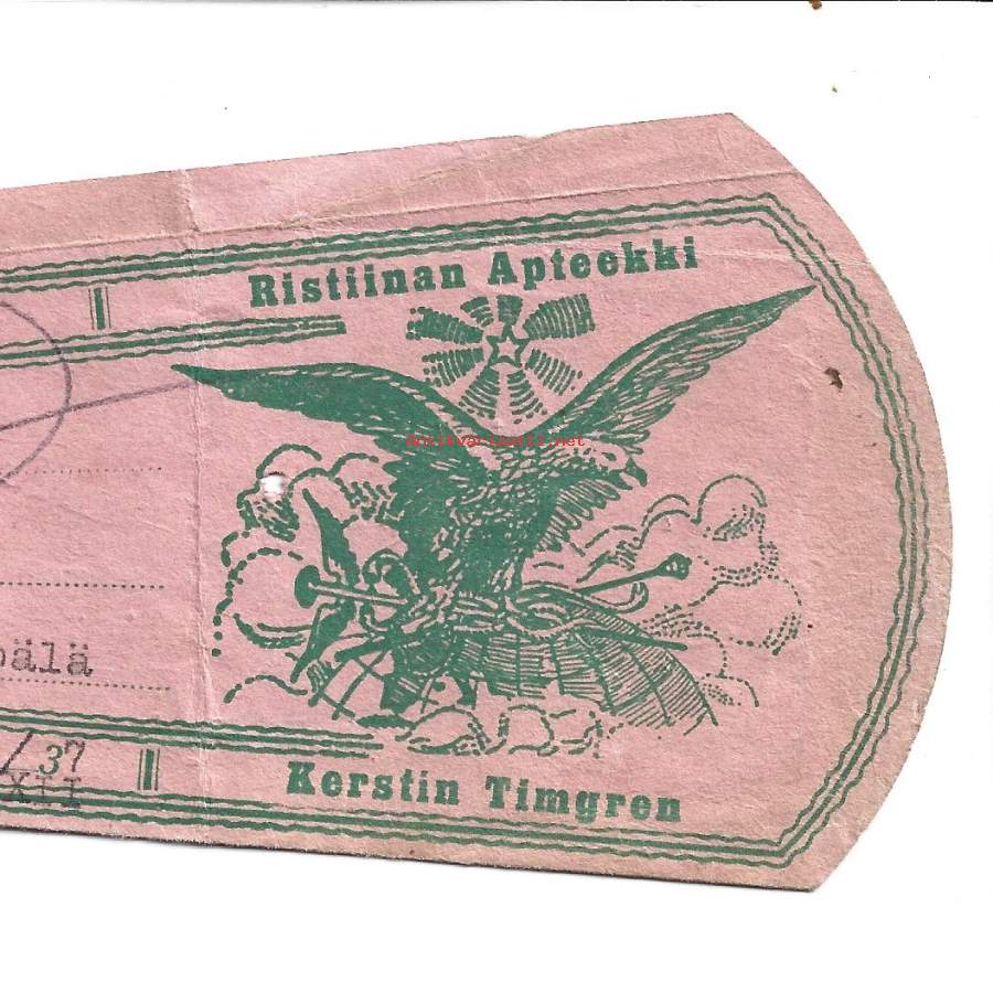 Ristiinan Apteekki Kerstin Timgren - resepti signatuuri 1937