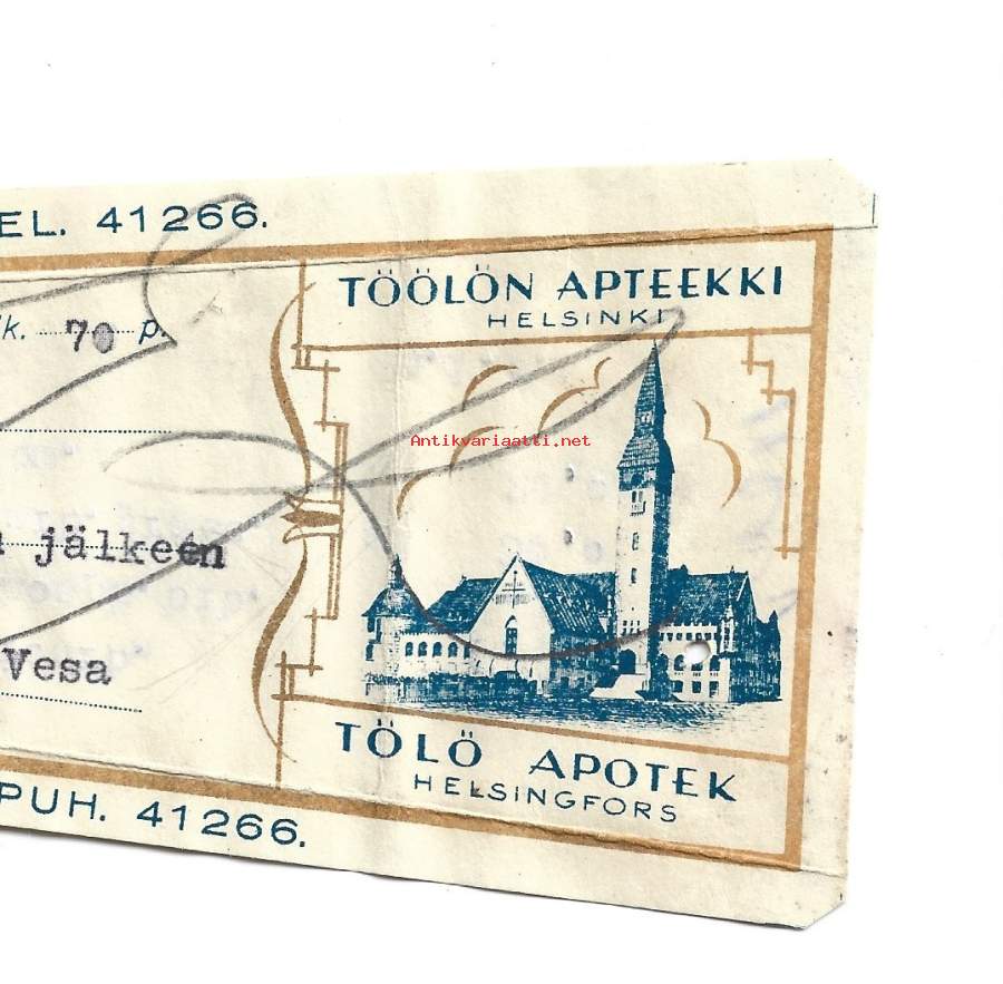 Töölön Apteekki Helsinki - resepti signatuuri 1932
