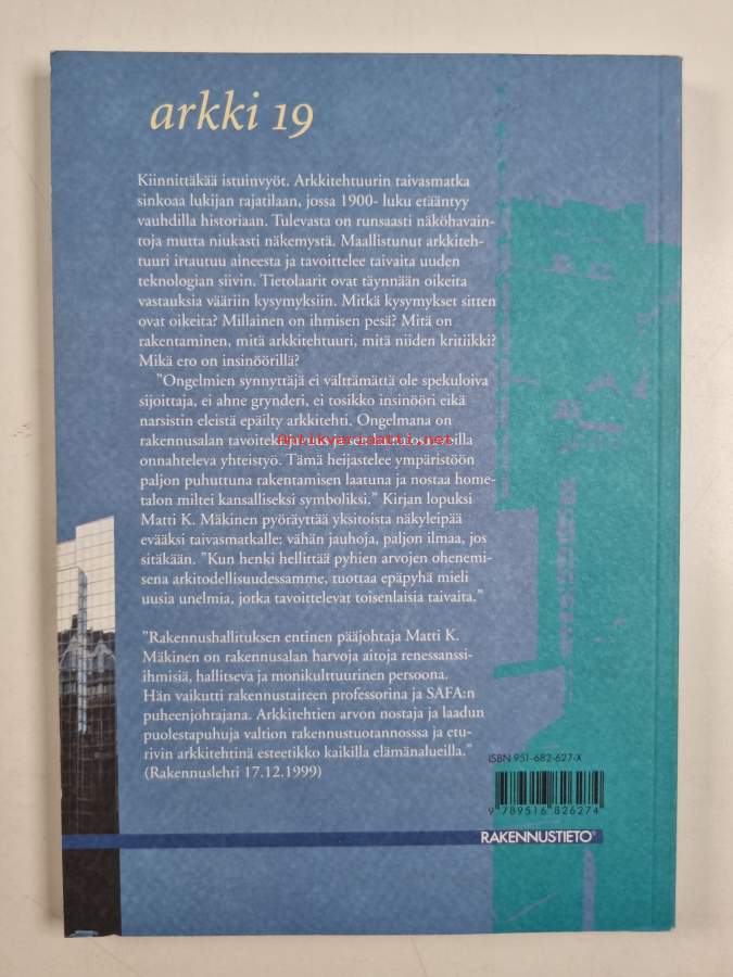 Sarja: Arkki 19Asiasanat: historia, rakentaminen, arkkitehtuuri, rakennuskulttuuri, arkkitehdit, filosofia, rakennukset, rakennettu ympäristö, rakennusaineet, estetiikka
