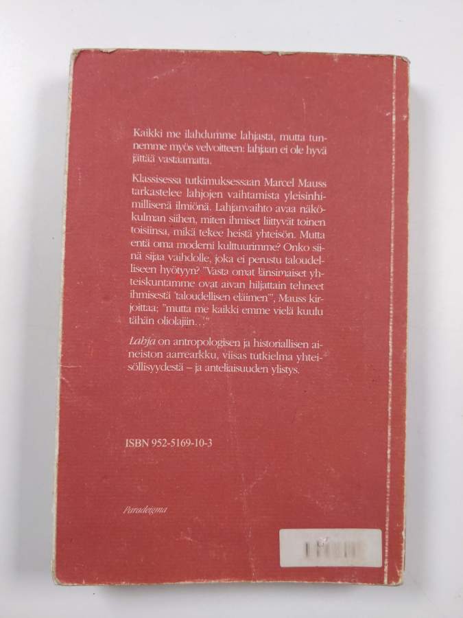 Muu(t) tekijä(t): Jouko Nurmiainen, Jyrki HakapääSarja: Paradeigma; Tutkijaliiton julkaisu 94Alkuteos: Essai sur le donAsiasanat: lahjat, intiaanikulttuurit, yhteisöllisyys, kulttuuriantropologia, hindulaisuus, kulttuurisosiologia, primitiiviset kulttuurit, roomalainen oikeus