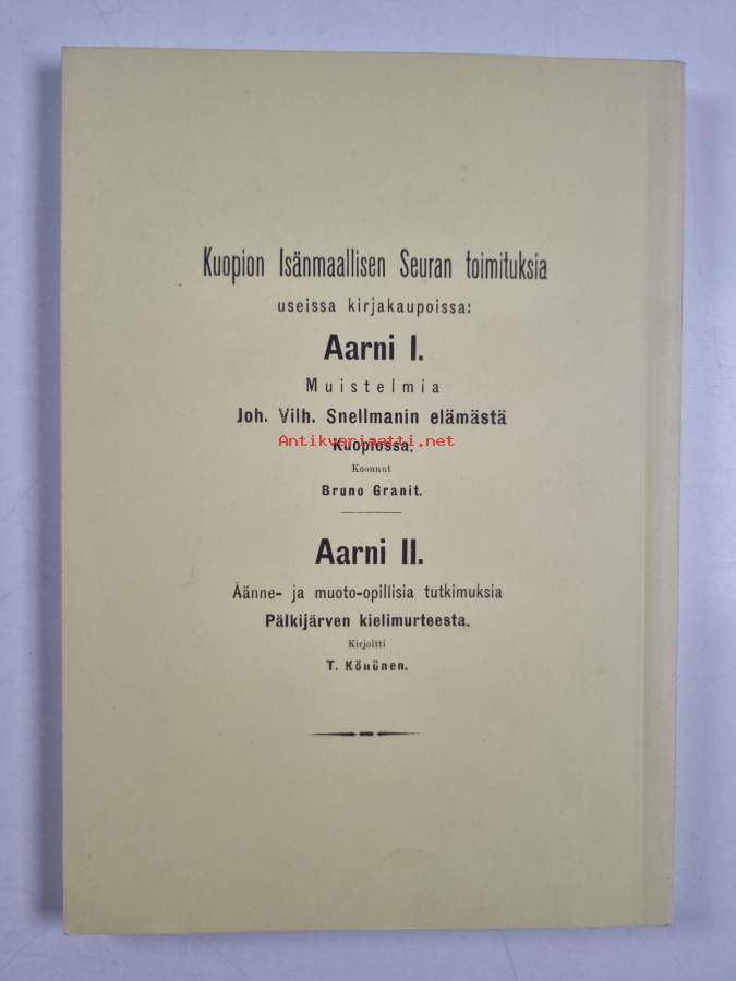 Aarni. Kuopion isänmaallisen seuran toimituksia III. Pälkijärven pitäjäs.