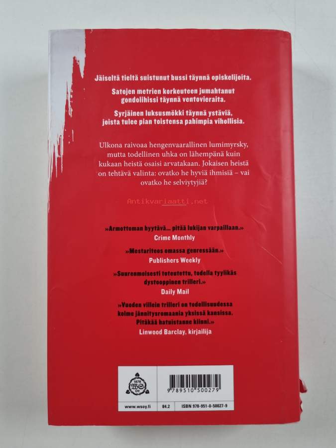 Alkuteos: The DriftAsiasanat: tutkimuslaitokset, selviytyminen, liikenneonnettomuudet, opiskelijat, hiihtokeskukset, pandemiat, vaihtoehdot, entiset poliisit, kostajat, lumimyrskyt, rinnakkaiset juonet, köysiradat