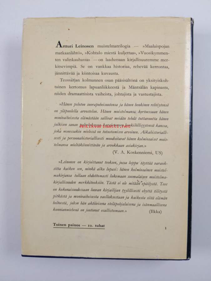 Maalaispojan matkaanlähtö - muistelmia I. Omissa muistelmateoksissaan Maalaispojan matkaanlähtö, Vuosikymmenten valinkauhassa