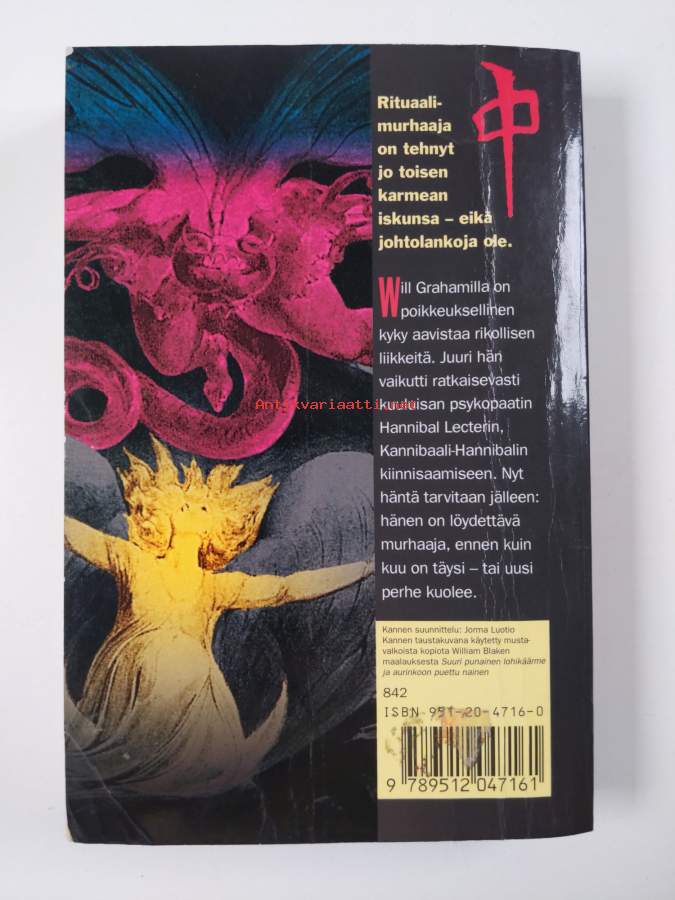 Muu(t) tekijä(t): Risto S ValassaariMerkinnät: omistajamerkintäAlkuteos: Red dragonAsiasanat: hannibal lecter, Uhrilampaat