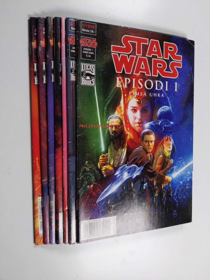 Huonokuntoinen (lukukelpoinen). Tarkempi kuntoluokka: K1+ ; Hieman käytön jälkeä kansissa. ensimmäisen lehden takakannen alareunasta puuttuu palanen ; setissä Episodi 1 Pimeä uhka osat 1-3 j Boba Fett Imperiumin vihollinen 1-4