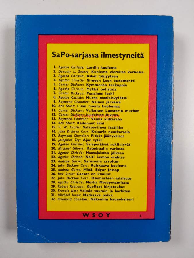 Muu(t) tekijä(t): Eero AhmavaaraSarja: SaPo 32Alkuteos: Farewell, my lovely