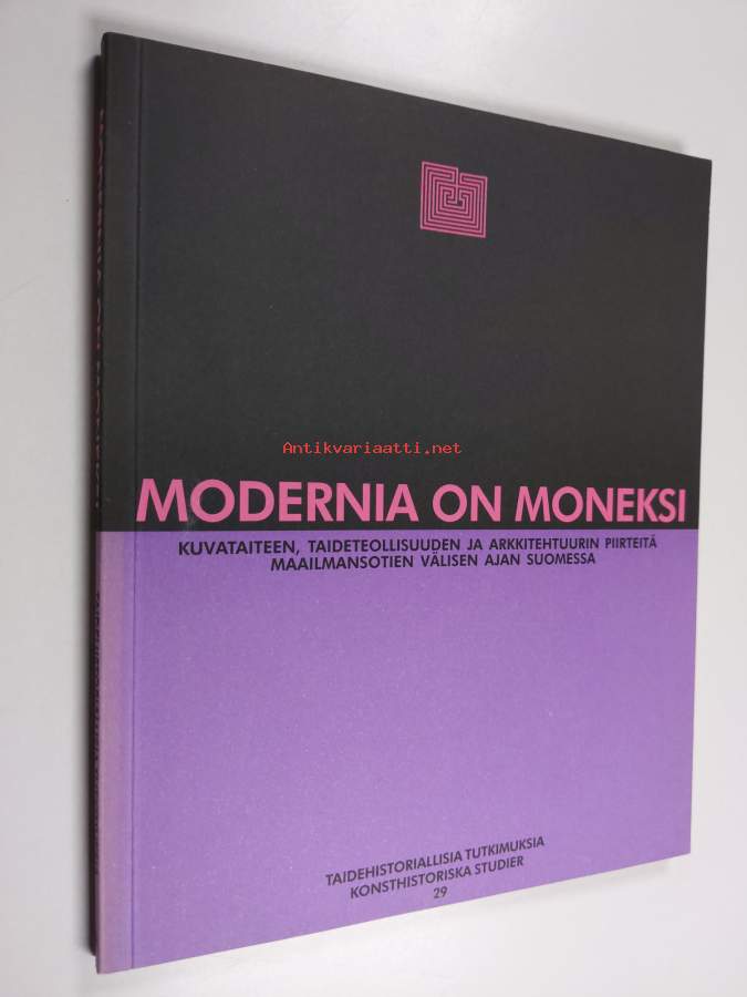 Koko nimi: Modernia on moneksi : kuvataiteen, taideteollisuuden ja arkkitehtuurin piirteitä maailmansotien välisen ajan Suomessa = Det moderna är mångahanda : texter om bildkonst, konstindustri och arkitektur mellan första och andra världskrigen i FinlandMuu(t) tekijä(t): Tutta Palin, Christian Hoffmann ym.Sarja: Taidehistoriallisia tutkimuksia 29Asiasanat: arkkitehtuuri, kuvataide, taidehistoria, taideteollisuus, modernismi