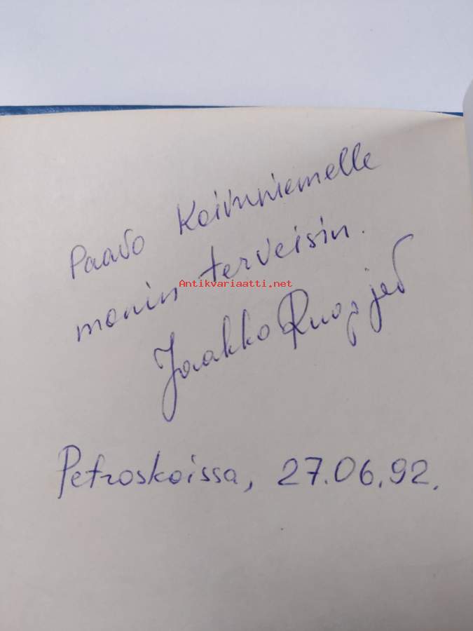Hyvä. Pienoista kulumaa kansissa, selkämyksessä vinoutta. toisen tekijän signeeraama omiste (signeerannut Jaakko Rugojeff)