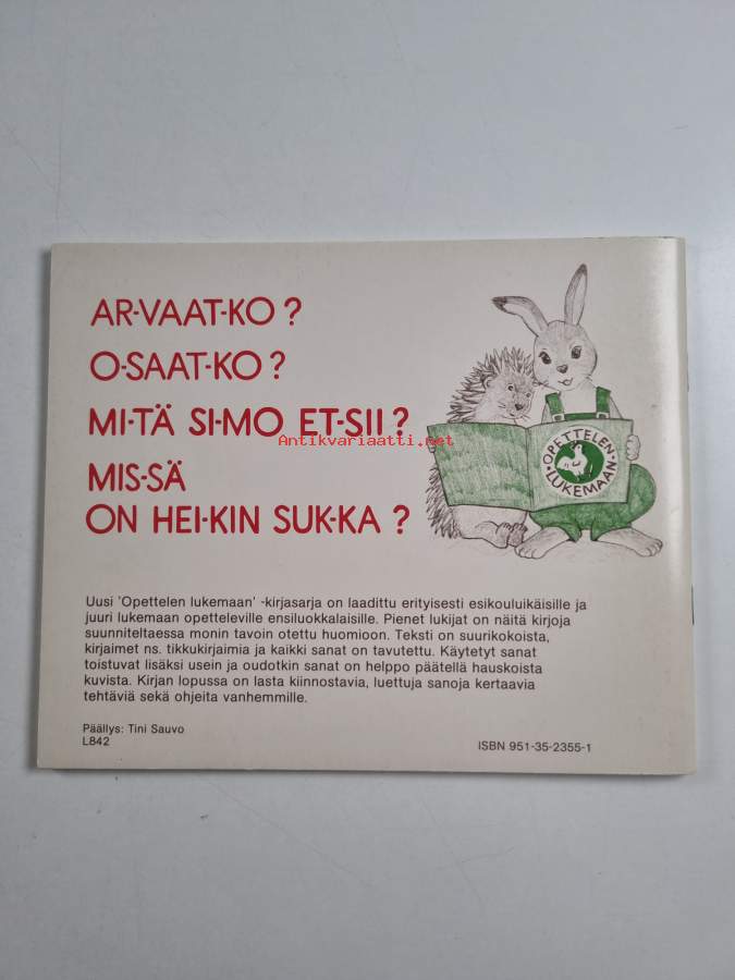 Muu(t) tekijä(t): Tini SauvoSarja: Opettelen lukemaanAsiasanat: tavukirjat, suuraakkoskirjat