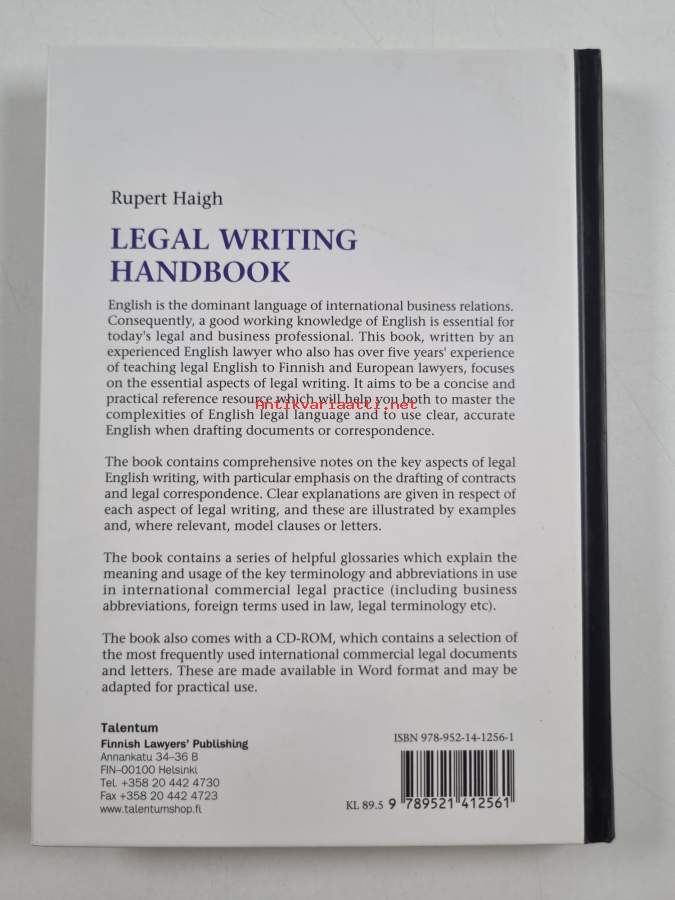 Muu(t) tekijä(t): Rupert HaihgAsiasanat: liike-elämä, kirjoittaminen, kielioppaat, yritykset, lainsäädäntö, englannin kieli, yrittäjyys, viestintä, asiakirjat, kirjallinen viestintä, ammattikieli, tieteellinen kirjoittaminen, liikeideat, julkaisun laadinnan oppaat, liiketaloustiede, oikeustiede, lait, lakikieli, yhteisöviestintä, liikekirjeenvaihto, kirjoitustaito, oppaat (teokset), liikeviestintä, oikeus (oikeudenala), yritysviestintä, Law, oikeuslingvistiikka, English language, elinkeino-oikeus, Commercial correspondence, Business writing, Business English, Legal composition