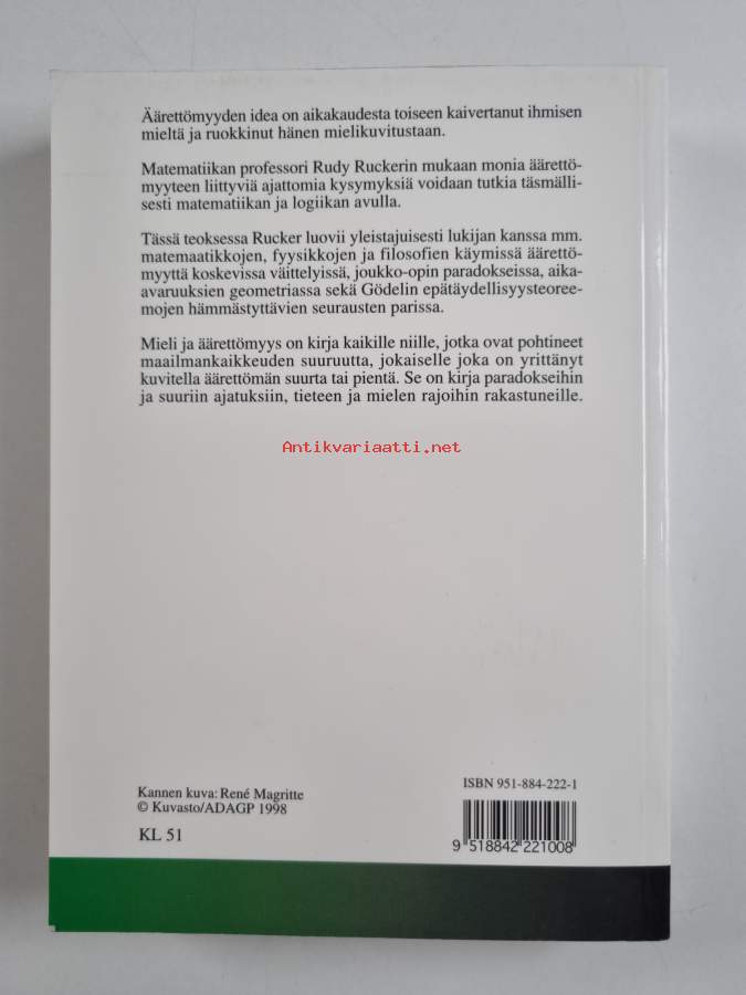 Muu(t) tekijä(t): Markus HotakainenMerkinnät: omistajamerkintäAlkuteos: Infinity and the mindAsiasanat: filosofia, maailmankaikkeus, matematiikka, äärettömyys