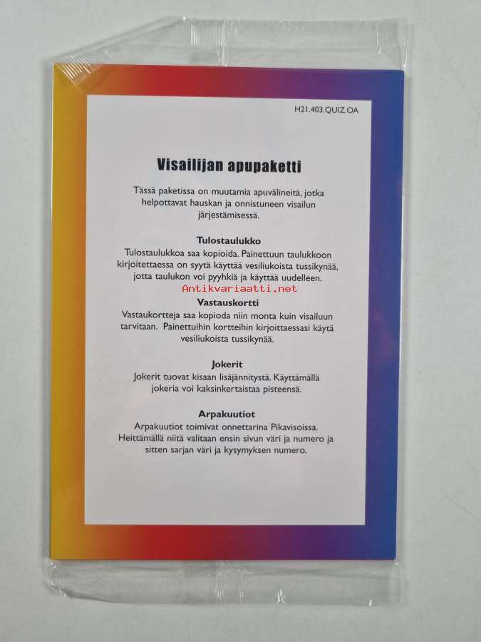 Erinomainen. Mukana visailijan apupaketti