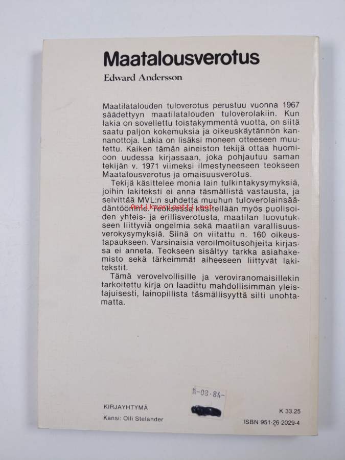 Hyvä. Hieman kulumaa kansissa, pienoista taitejälkeä kansissa, takana vanha hintalappu